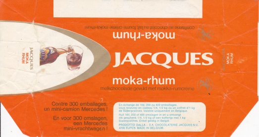 | Čokoládové obaly z čokoládových tyčinek Jacques vyrobených v letech 1971 - 1975. Jacques oslavil sedmdesáté páté výročí založení firmy v roce 1972. |