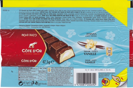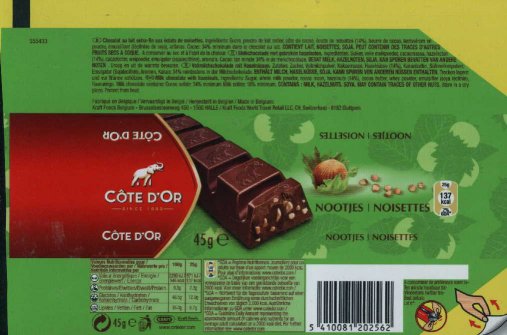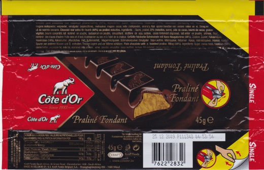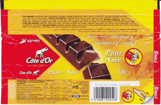 | Čokoládové tyčinky Cote d´or s ořechy se balí do fólií od roku 2001, kompletní řada tyčinek Cote d´Or je balena do znovuotvíratelných fólií od roku 2004. |