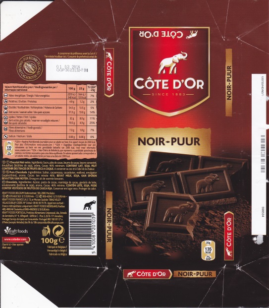 Chocolate wrappers from classic 2x 75g chocolate bars COTE D´OR, Mignonettes and chocolates Cote d´or intense 75g. |