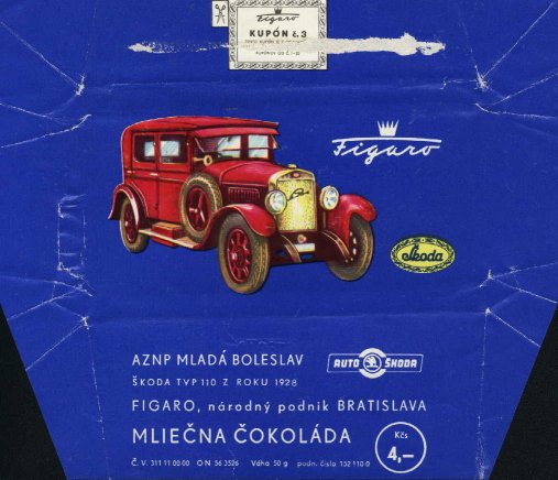 launched series of 50g chocolate bars with pictures of Škoda cars in