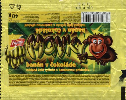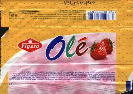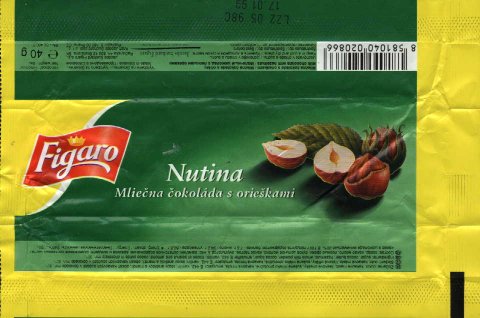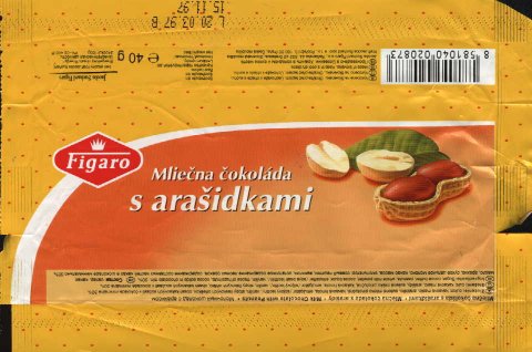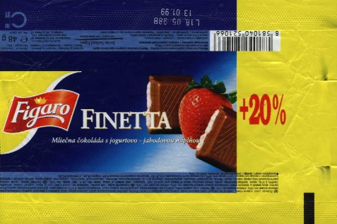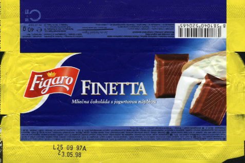 Chocolate wrappers from filled and solid chocolate bars FIGARO and 33g filled chocolate bars Ina, Rumba and Malina. |