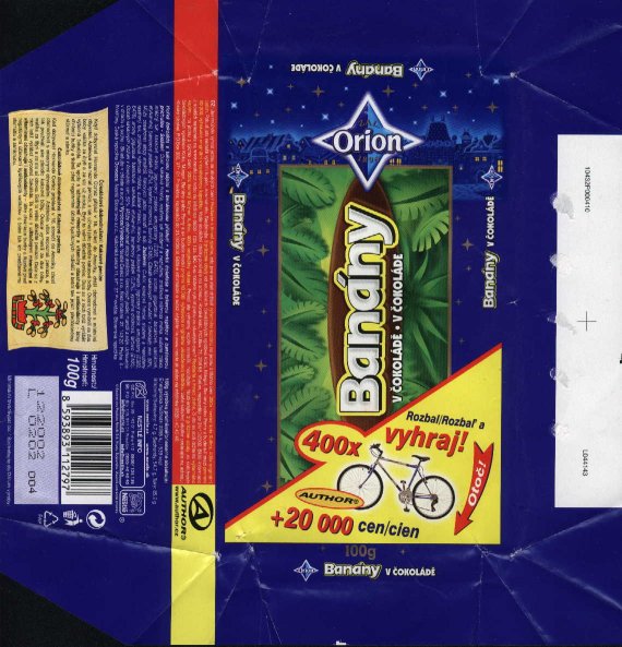 Since 2001 chocolate with banana filling Banány v čokoládě is also made as 100g bar. |