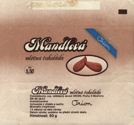| Tabulkové čokolády ORION z 80. a počátku 90. let. |