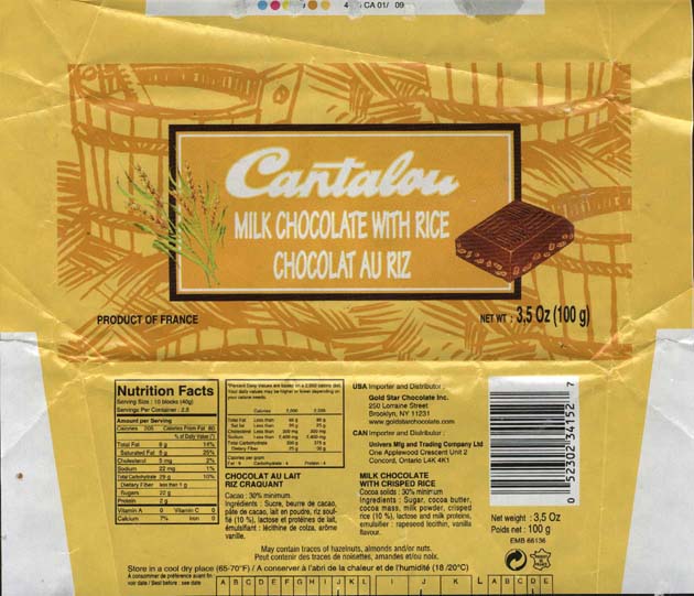 Chocolate wrappers from chocolate bars Cantalou and Süsser. Cantalou chocolates were imported to Usa in about 2000. |