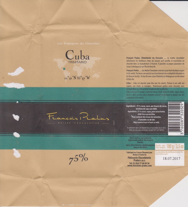 1948 and invented speciality of the company LA Praluline in 1955. His son Francois produces range of high quality "bean to bar" single origin chocolate bars. |