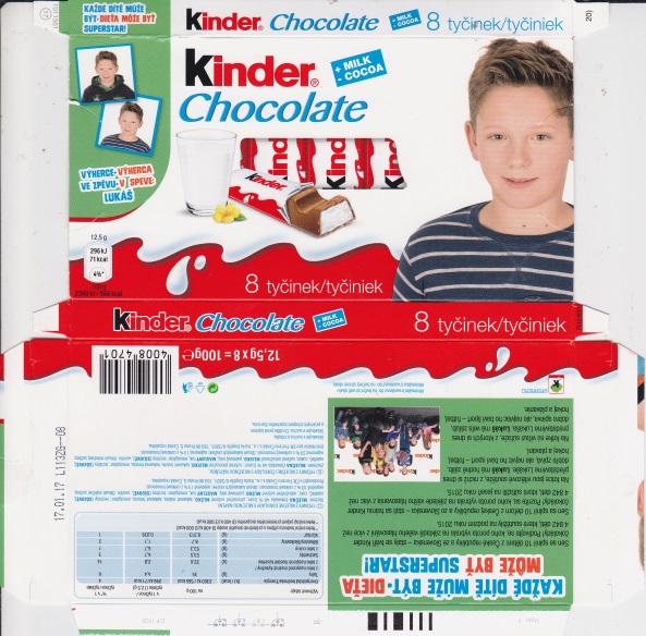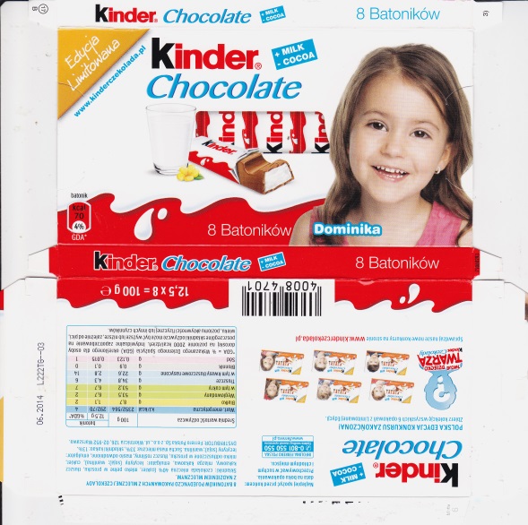 | Čokoládové obaly z 50g a 100g čokoládových tyčinek Kinder. |