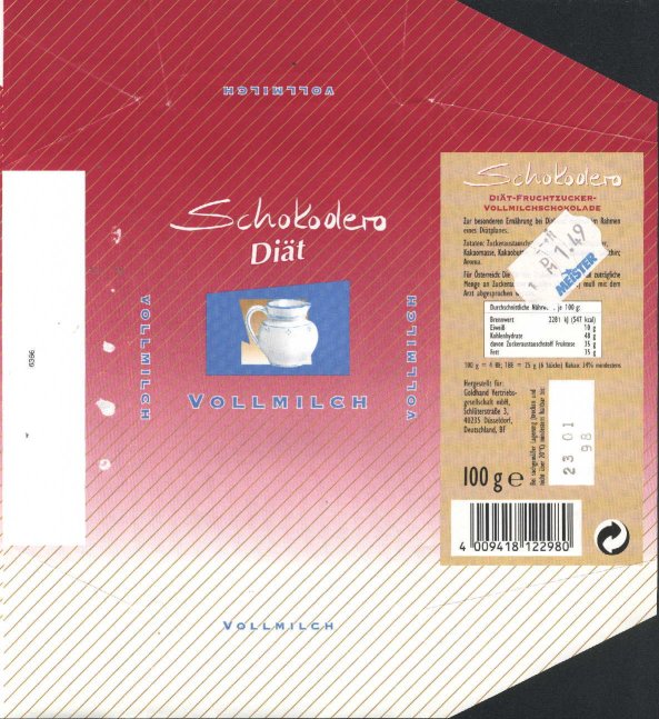 Chocolate wrappers by Goldhand sold in Metro group Stores with brands Schokodero, Könignuss, Aro and Tip.
