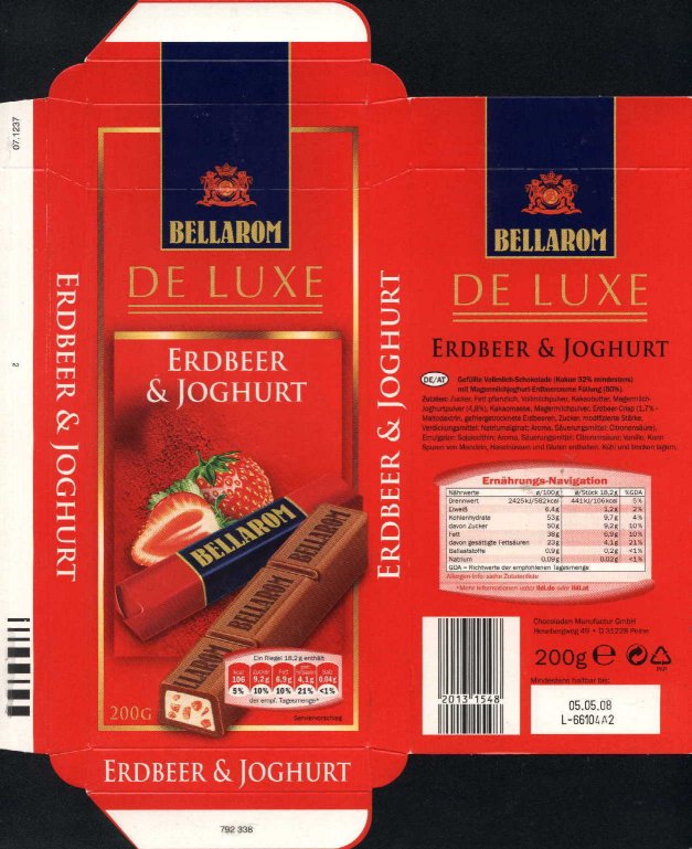 Raüsch produces cocoa origin chocolate bars J. D. Gross and surprisingly also filled chocolate bars Animation/ Bellarom Deluxe for Lidl. |