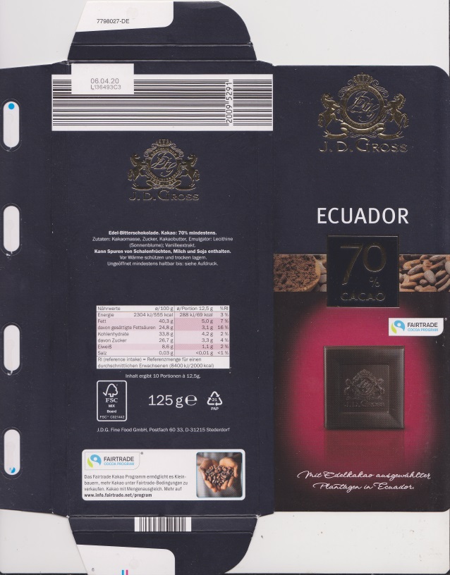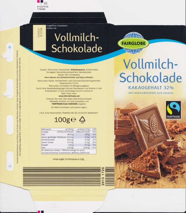na svých obalech pro německý trh přímo výrobce čokolády.