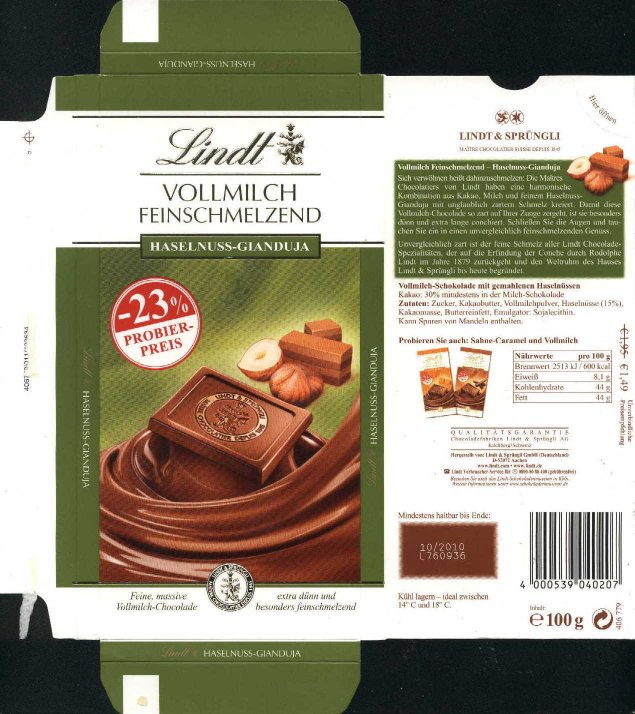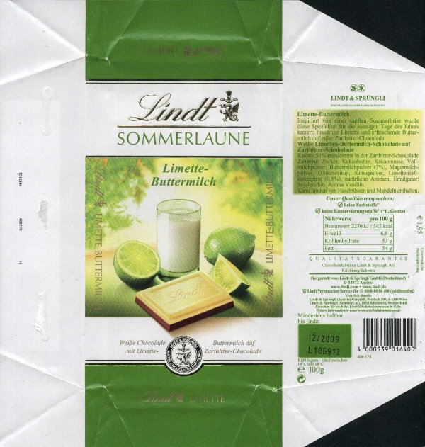řada čokolád Sommerlaune. Od roku 2010 se vyrábí sezónní čokoládové tabulky Lindt v novém delm tvaru a jsou baleny do kartónových obalů. |