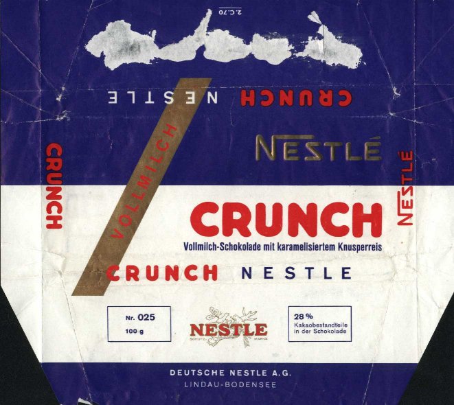 NESTLÉ  owned german chocolate maker SAROTTI since 1929 till 1998. Chocolates with brand NESTLÉ ( Crunch, Coconat) were made by Sarotti but sold under Deutsche Nestlé. NESTLÉ took over company Rowntree in 1988 which produced in Germany Kit Kat, Rolo and After Eight chocolates in exStockmann factory in Hamburg.