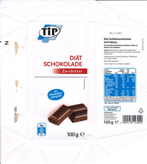 Èokoládové obaly z èokoládovıch tabulek vyrobenıch pro obchodní øetìzec Real znaèek Tip a Real.