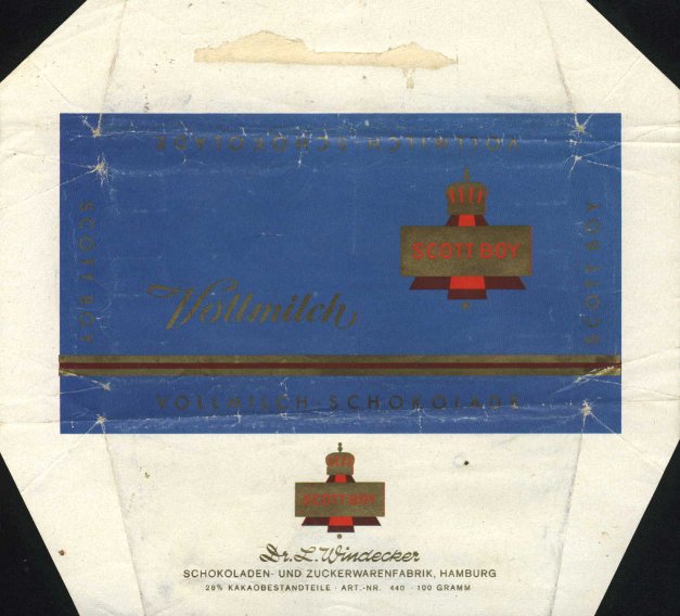 Chocolate factory Dr. L. WINDECKER produced chocolates with brands Ascot, Derby, Leslie, Scott Young, Scott boy, Prominenz or Argenta.