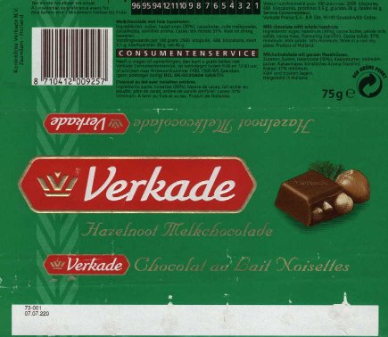 | Čokoládové obaly Verkade z osmdesátých a devadesátých let. |
