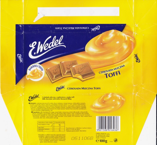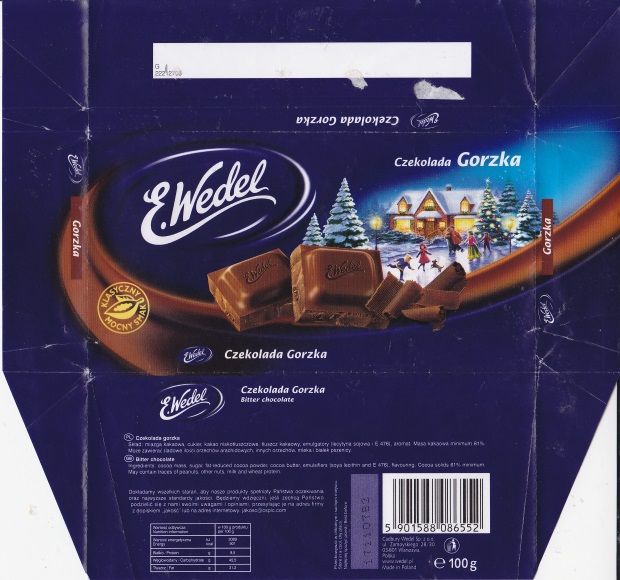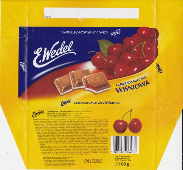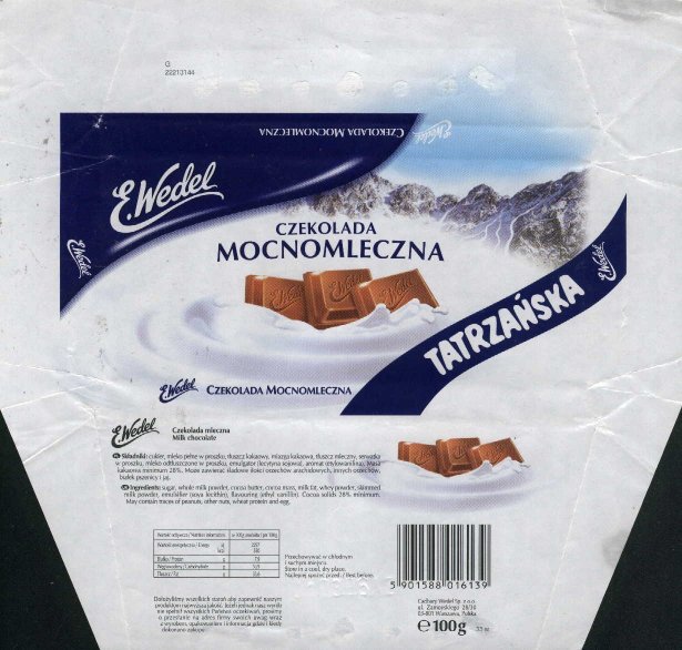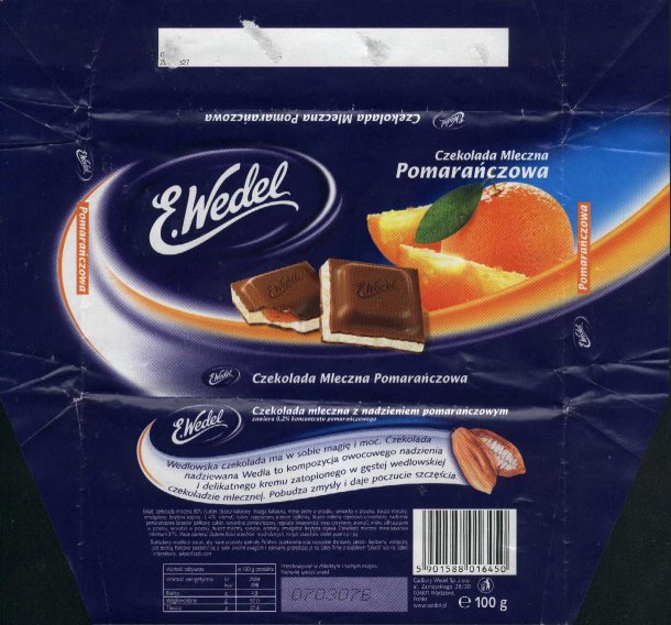 Chocolate wrappers from chocolate bars Wedel. New "Cadbury like" design of Wedel logo was introduced in 2006. |