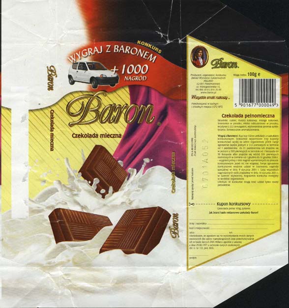 | Firma MILLANO vyrábí kromě čokoládových pochoutek také řadu čokolád Baron. |