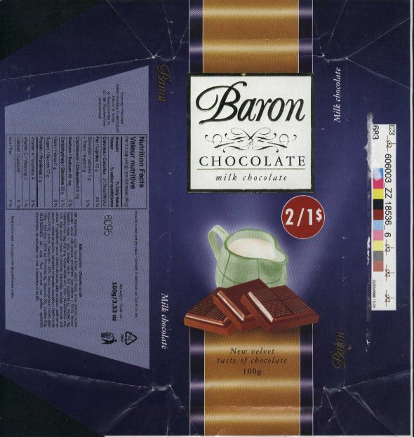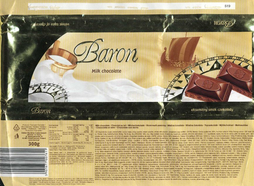 160g aerated chocolate and 250g chocolate bars Baron were introduced in 2002. 300g chocolate bars Baron has been manufactured since 2007. |