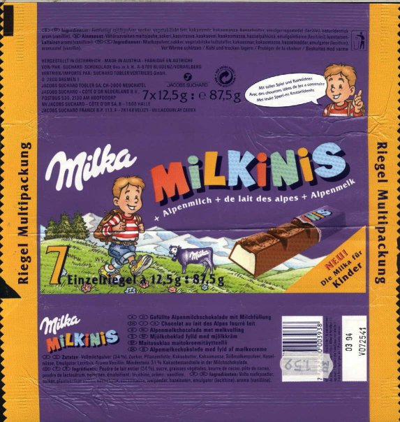Milka Milkinis (milk chocolates with milk filling) is manufactured in Austria since early 90´s as well as marzipan in chocolate Milka and napolitains Milka Naps. |