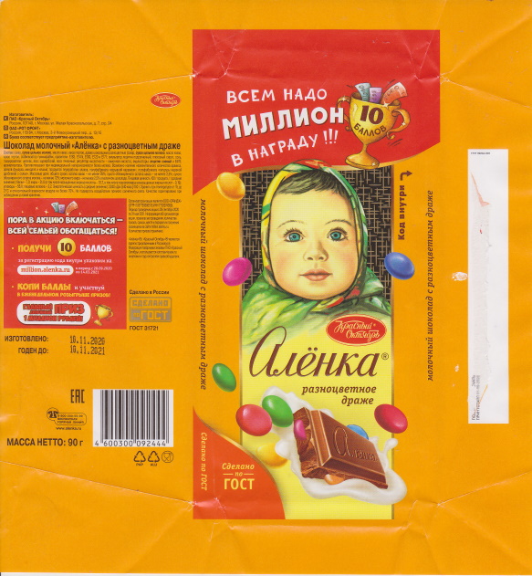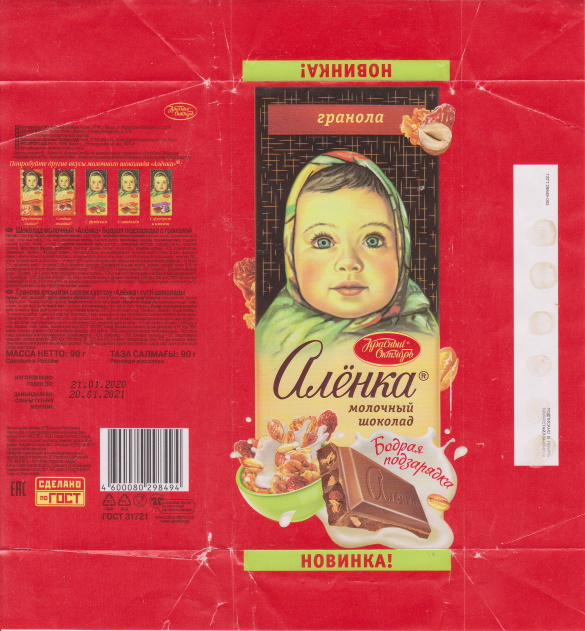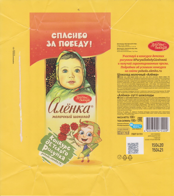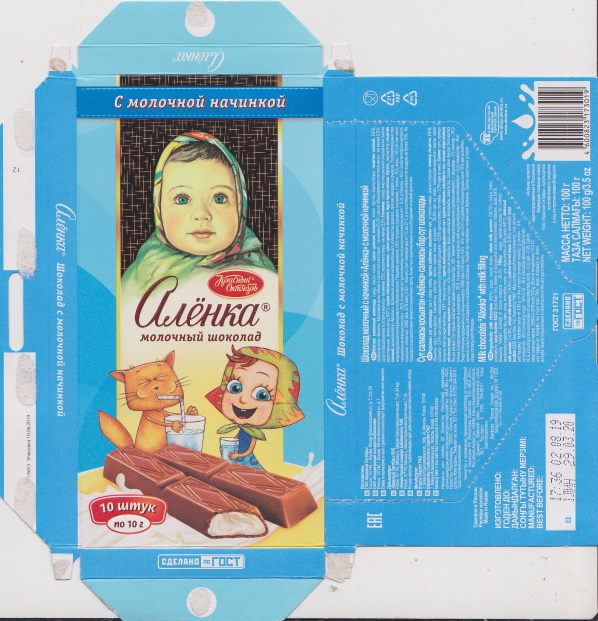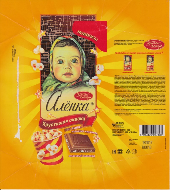 KRASNIJ OKTJABR vyrábí od roku 1966 tabulkovou čokoládu ALENKA s téměř nezměněným designem. Konfeta Miška Kozolapy se nyní vyrábí také jako tabulková čokoláda. |