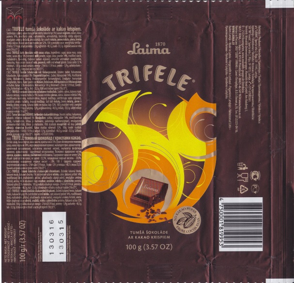 Chocolate wrappers Laima since 2011. Laima switched to foil chocolate wrappers for their 100g bars in 2012. |