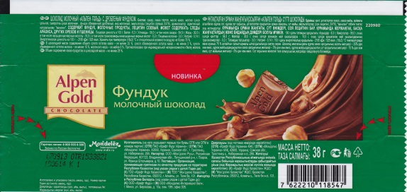 Kraft Foods manufactures chocolate bars Alpen Gold, Vozdushnyi in Russia. |