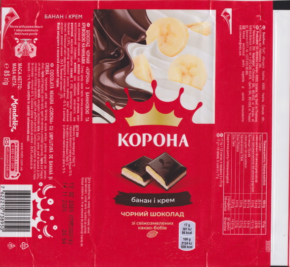 KRAFT FOODS was renamed to Mondelez in 2013. MONDELEZ manufactures chocolate tablets Korona and Milka in Ukraine and also chocolates for western markets - white chocolates under brands Milka, Cadbury, Marabou. |