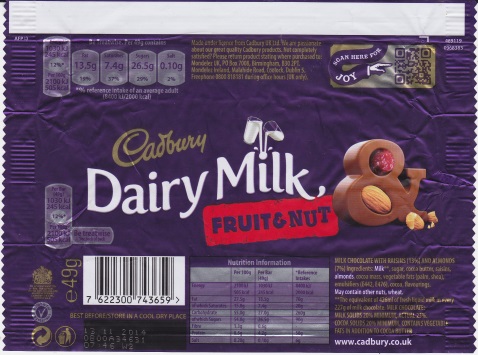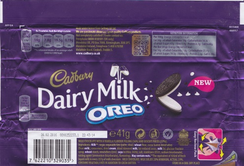 Foods renamed Mondelez in 2013. Cadbury launched new chocolate bars with Mondelez products as Dairy Milk Oreo, Dairy Milk Chips Ahoy, Dairy Milk Lu, Dairy Milk Ritz. These days only part of Cadbury chocolates for british market are produced in Great Britain. Most of Cadbury products are imported from other Mondelez european manufacturing plants in France, Belgium, Germany, Poland, Slovakia, Hungary, Austria. |