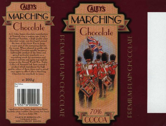 John MACKINTOSH and his wife Violet opened a pastry shop in Halifax in 1890. This year Mrs Mackintosh devised the recipe for Mackintosh's Celebrated Toffee. Mackintosh bought A.J.CALEY & Son Ltd. of Norwich in 1932. Seven years later both companies merged and management of Mackintosh moved to Norwich in 1955. MACKINTOSH merged with ROWNTREE in 1969 and formed ROWNTREE MACKINTOSH. NESTLÉ acquired Rowntree Mackintosh in 1988 and closed factory in Norwich in 1994. Three former executives acquired CALEY´s brand from NESTLÉ and established CALEY´S OF NORWICH in 1996. They specialize in good chocolate with high cocoa content. |