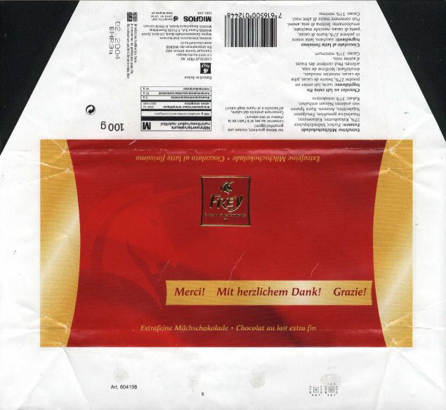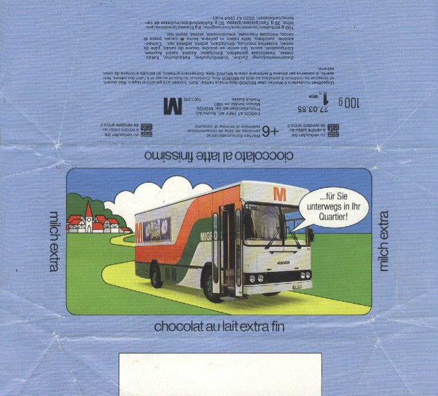 | Čokoládové obaly z čokolád FREY z obchodů Migros, často vydaných k výročí otevření dané prodejny. |