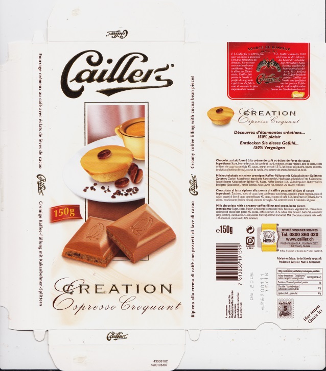 Flat premium chocolate bars Cailler were introduced in about 2003. |