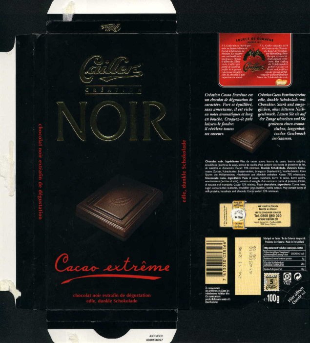 Prémiové čokoládové tabulky Cailler byly představeny kolem roku 2003. |