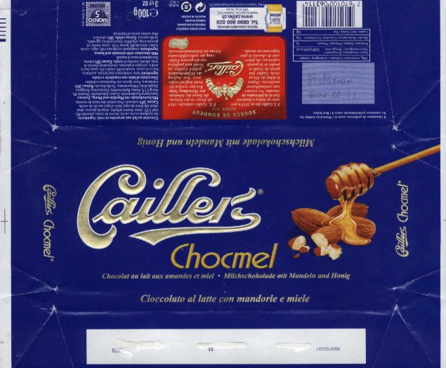almonds and honey Chocmel used to be sold under Kohler brand till 60´s. Chocolate Crunch was sold under Cailler brand rarely. Chocolate wrappers from filled chocolates Sélim and Femina. |