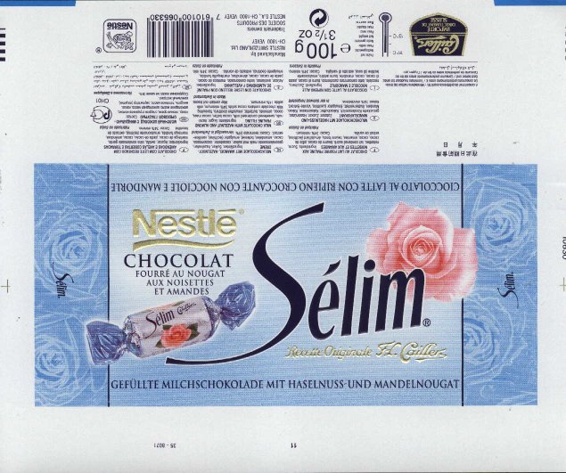 Cailler. Čokoláda Crunch se většinou vyráběla se značkou Nestlé, ale vyjímečně i se značkou Cailler. Obaly od čokolád z plněných čokolád Sélim a Femina. |
