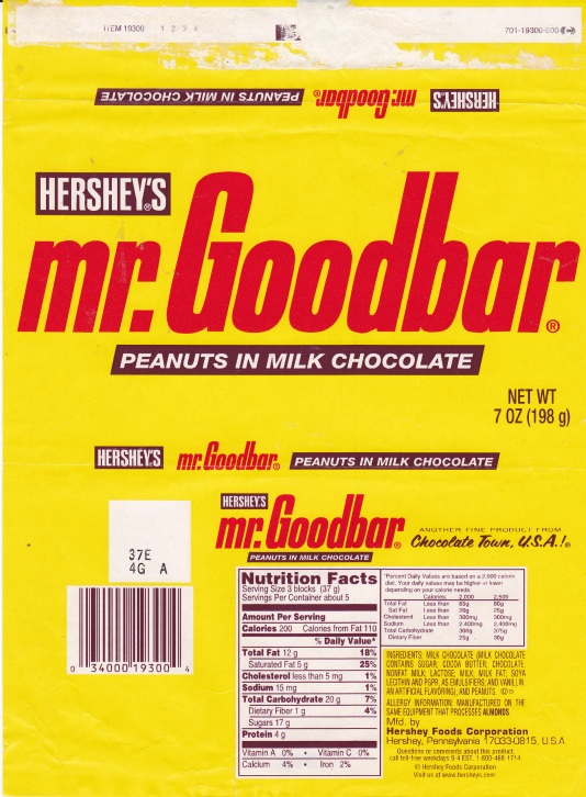 Hershey made milk chocolate with peanuts Mr. Goodbar in