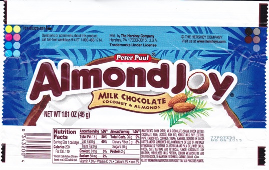 for american market, chocolate candy bars Almond Joy and Mounds, mint
