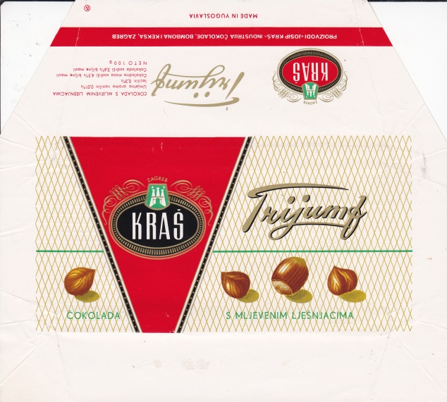 Chocolate wrappers from chocolate bars Kraš made in about 1967 - 1990. Kraš produced 50g, 100g, 200g and also 500g chocolate bars. Kraš produced chocolate with alpine milk Runolist. |