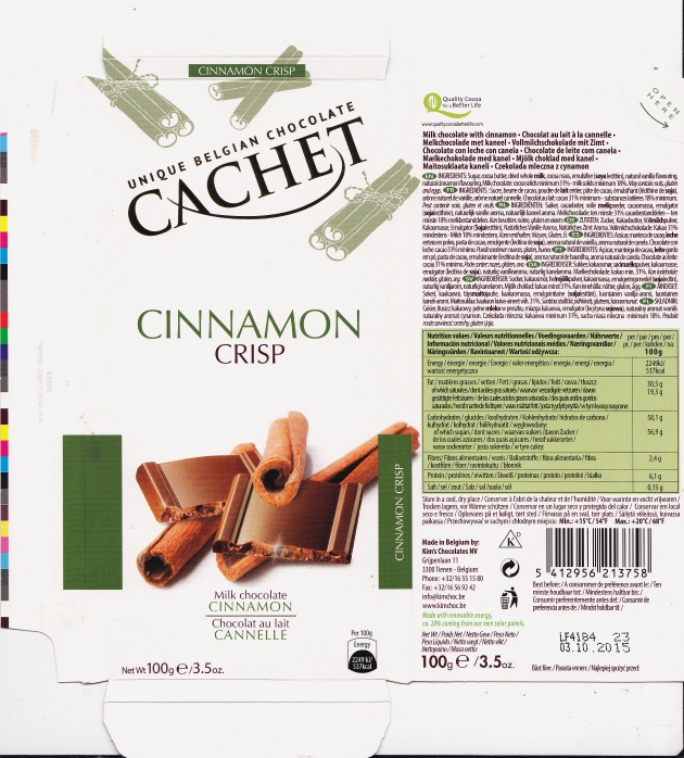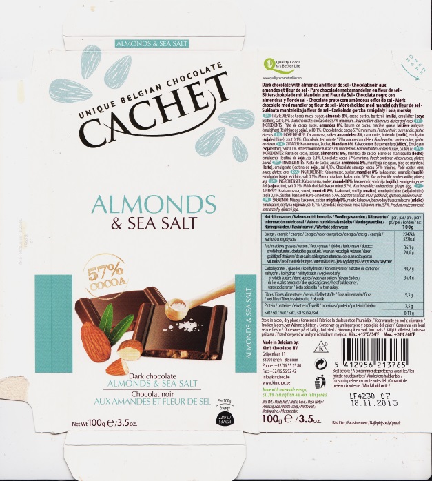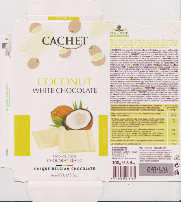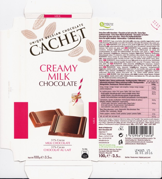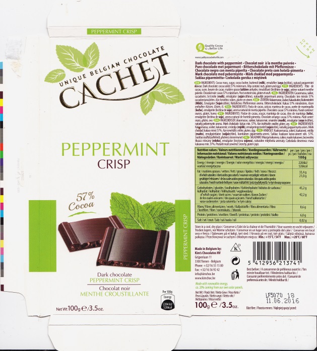 Windel Group (výrobce čokolády značek Confiserie Heidel a Farüchoc). Kim´s chocolates moved to new production site in Tienen. Company now uses brands Cachet and Kc chocolatier. |