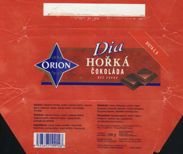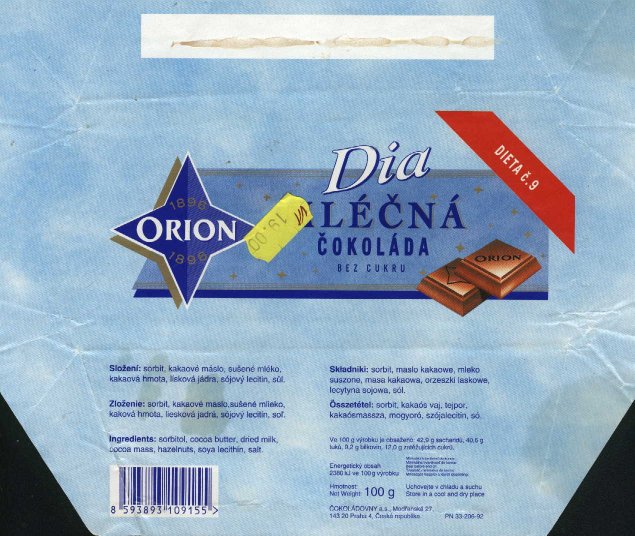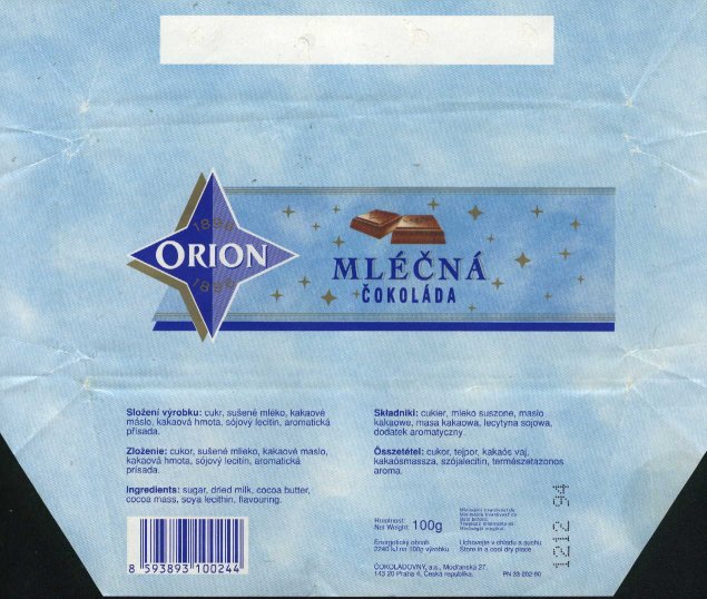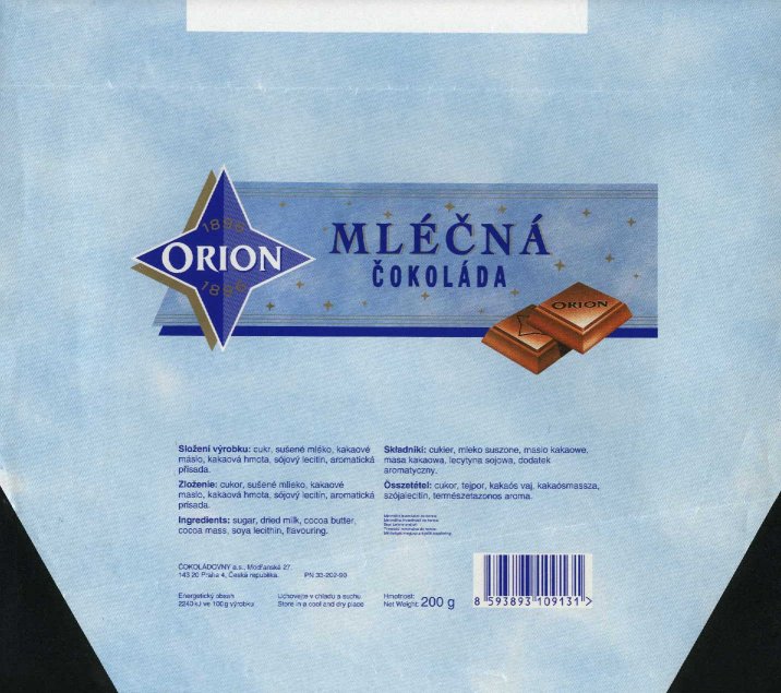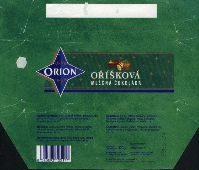 Design of ORION chocolate wrappers from years 1994 - 1996. |