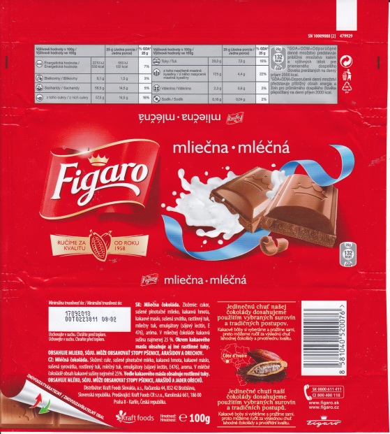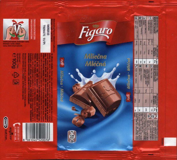 2008 jsou čokoládové tabulky Figaro baleny do fólií a některé jsou