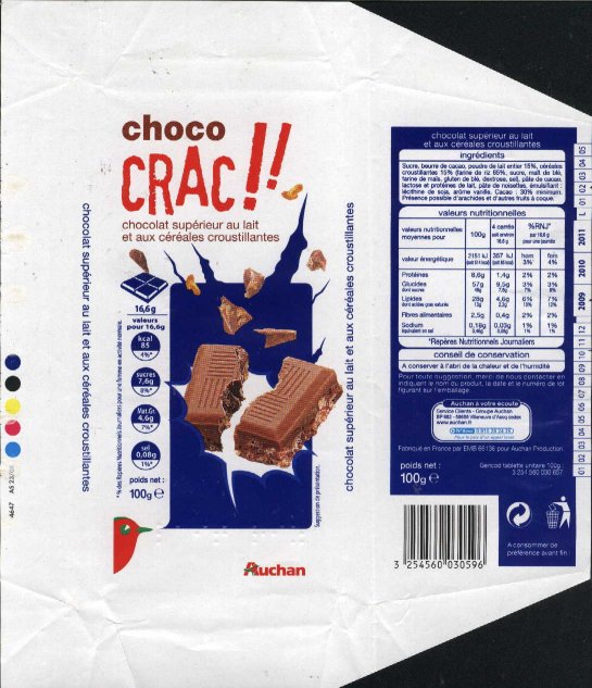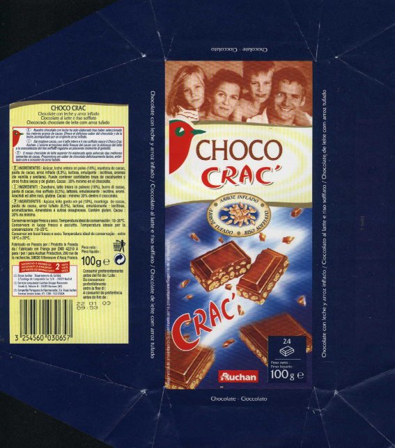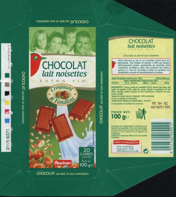 státech. Èokoládové obaly z èokolád vyrobenęch pro prodejny Auchan. |