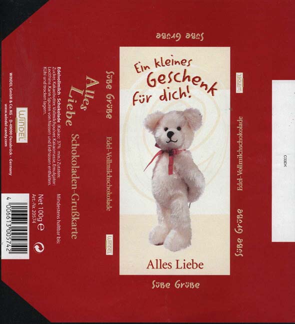 V roce 1995 byl Farüchoc pøevzat firmou WINDEL z Osnabrücku. O ètyøi roky pozdìji byla v Osnabrücku postavena nová továrna. FARÜCHOC se specializuje na neapolitánky a malé tabulky èasto v multi-baleních s dìtskými motivy nebo spoleènì s barvièkami nebo pastelkami. |
