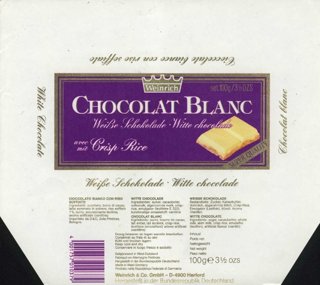 Herfordu. Výroba čokolády byla přidána po první světové válce. Weinrich vlastnil od 80. let do roku 1997 značku Dr. Hillers. |