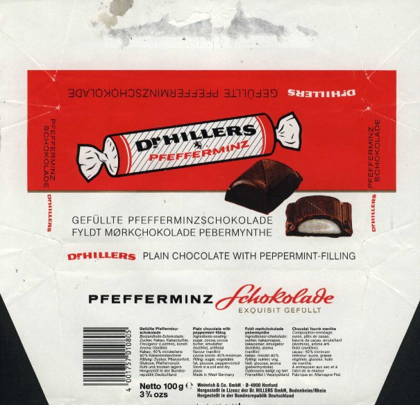 Production of chocolate started after first world war. Weinrich owned brand Dr. Hillers since 80´s till 1997. |
