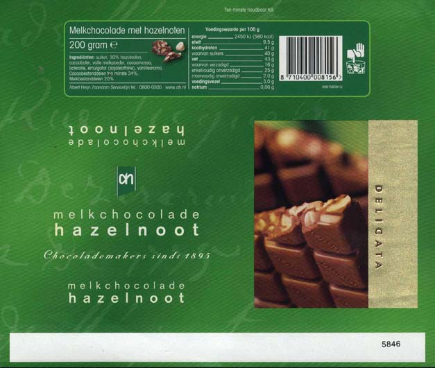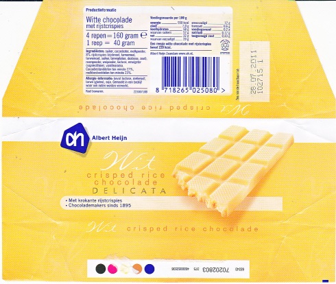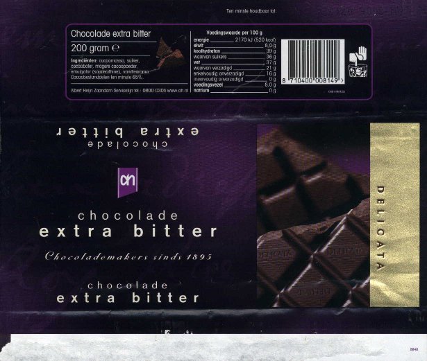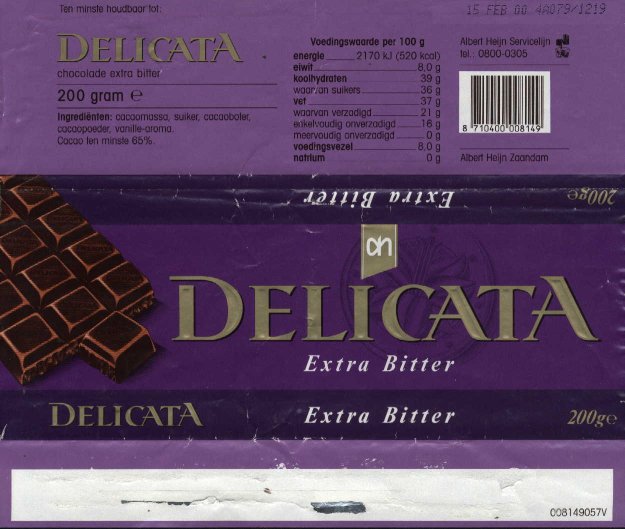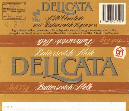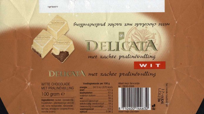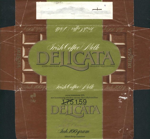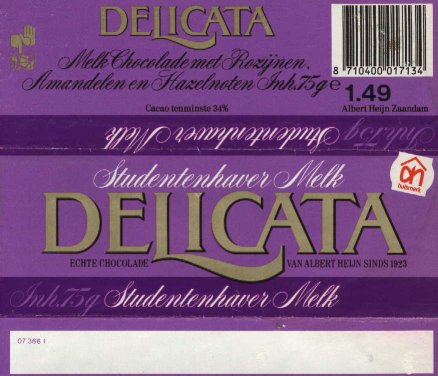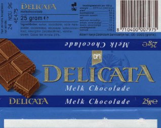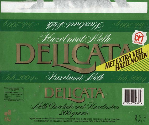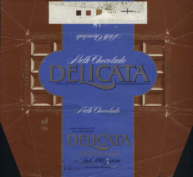 | Čokoládové obaly Albert Heijn od osmdesátých let do součastnosti. Značka Delicata byla v posledních letech na obalech potlačena, naopak logo AH zvýrazněno. |