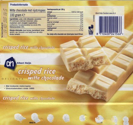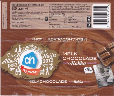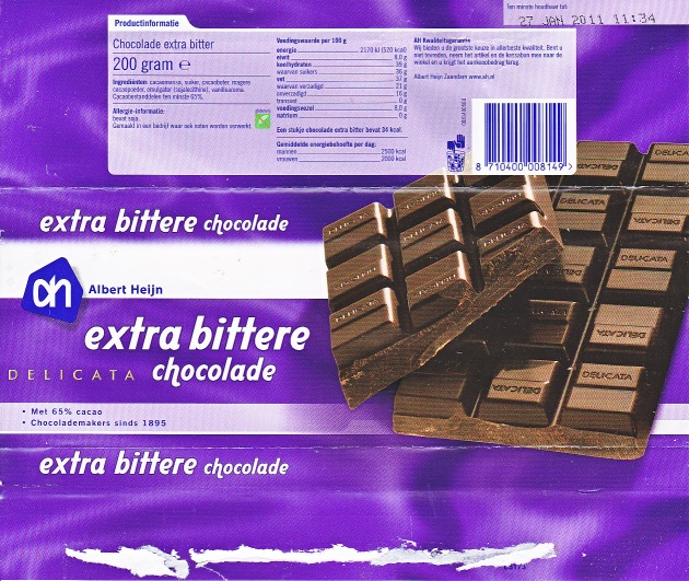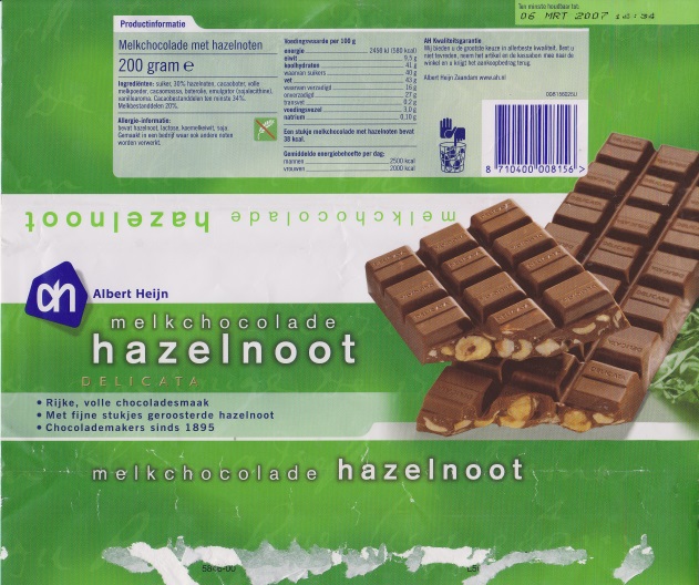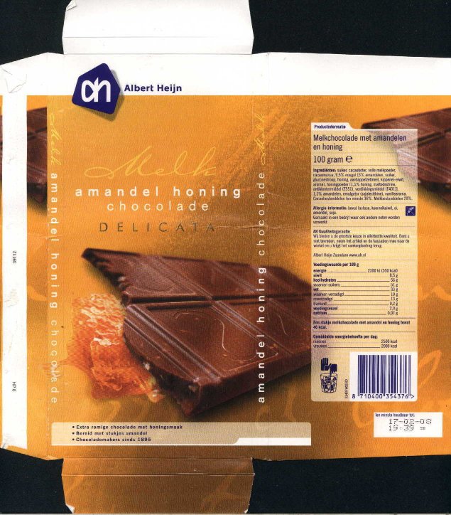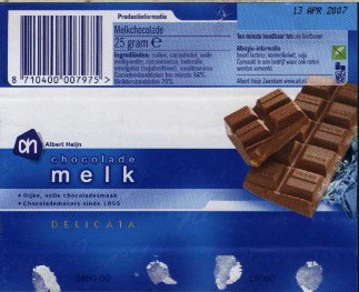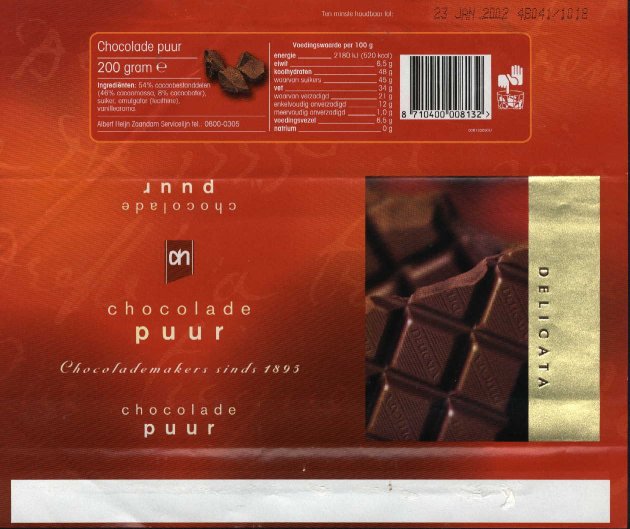 Chocolate wrappers Albert Heijn since 80´s till now. Brand Delicata was put down on wrappers in last years and logo AH was pointed up. |