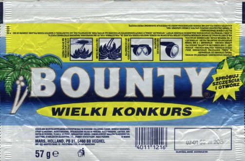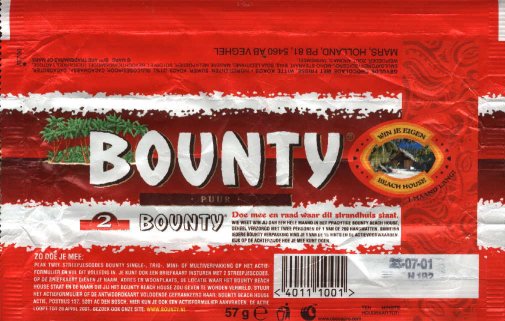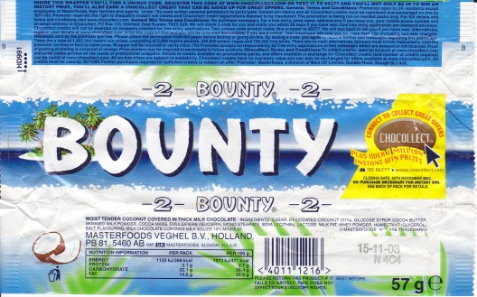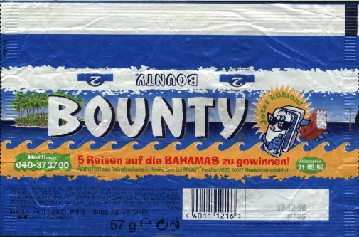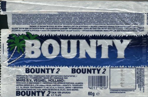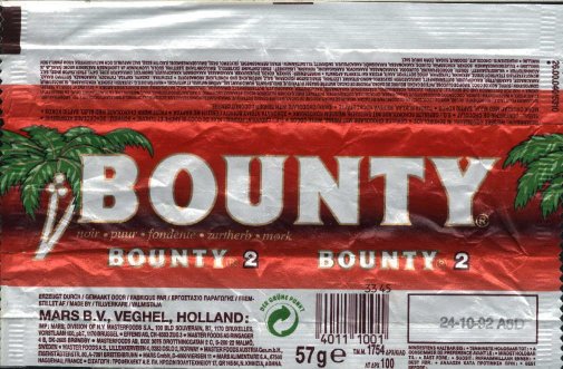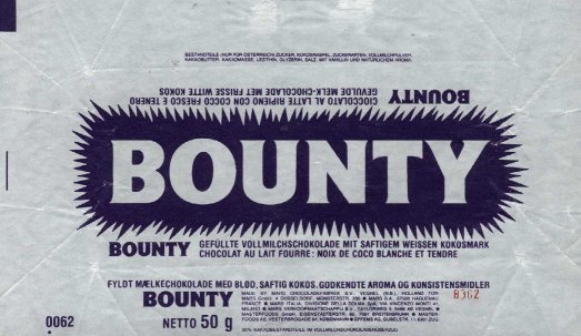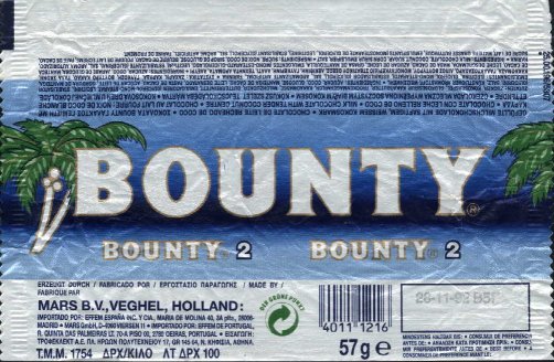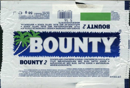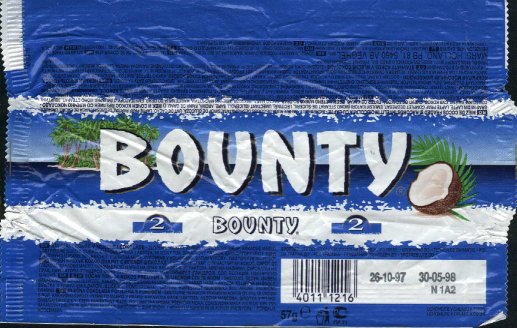 Limitovaná edice tyčinky Bounty s příchutí manga byla v prodeji v létě 2004. |