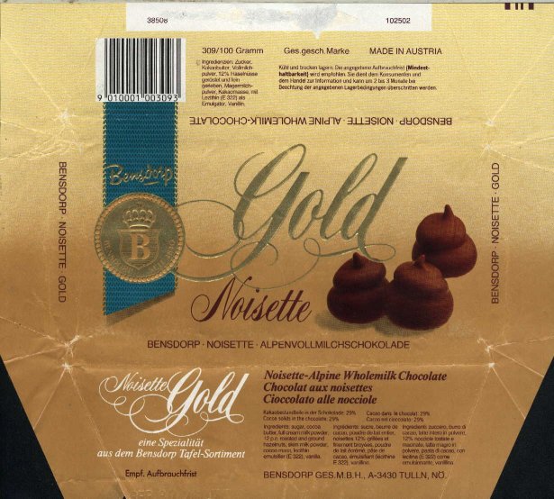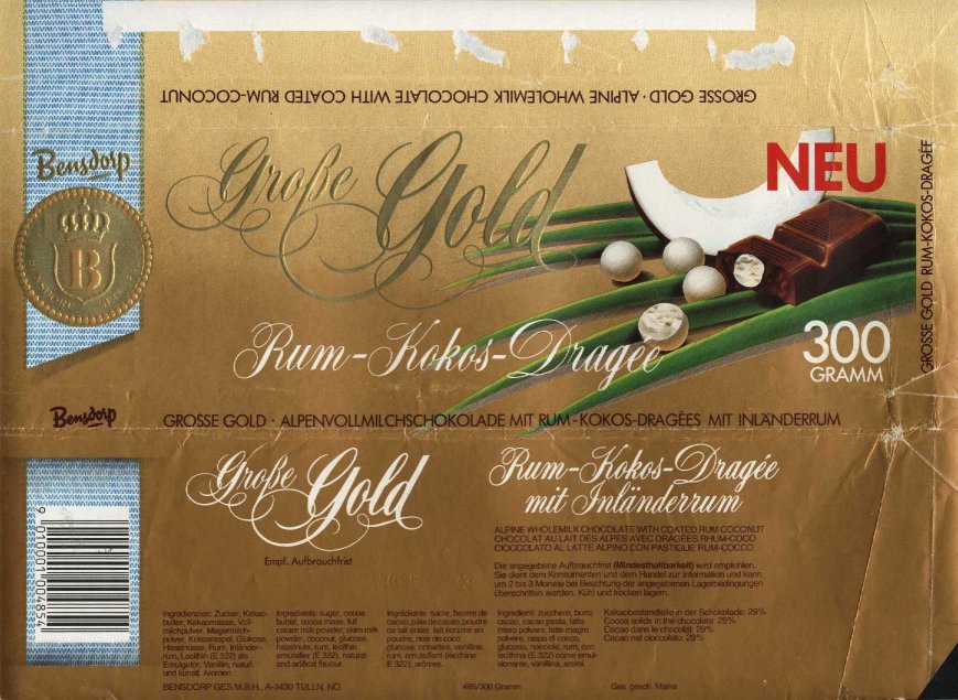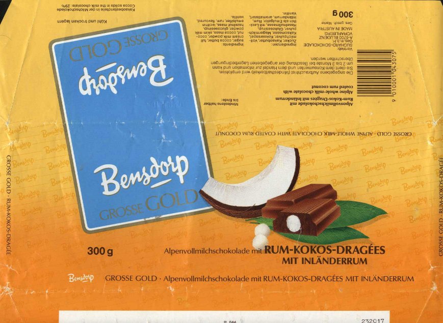 Chocolate wrappers from BENSDORP 100g - 300g slabs.