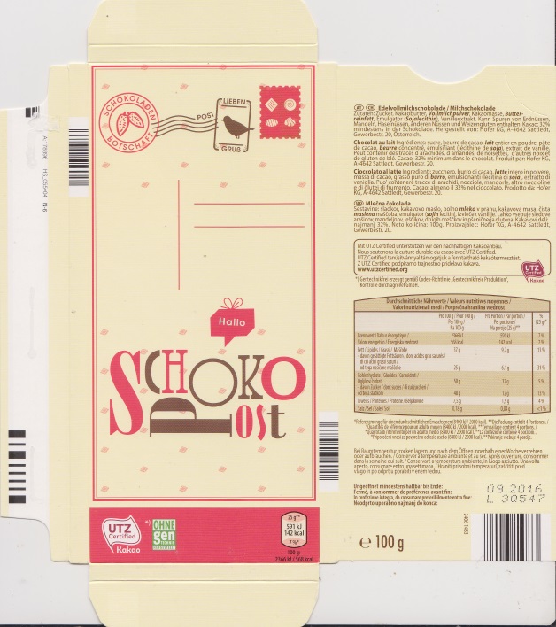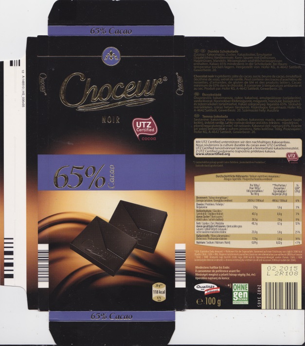 | HOFER je rakouská pobočka německého obchodního řetězce Aldi. Používá na obalech značky Bella, Riquet, Choceur nebo Mauritius. |