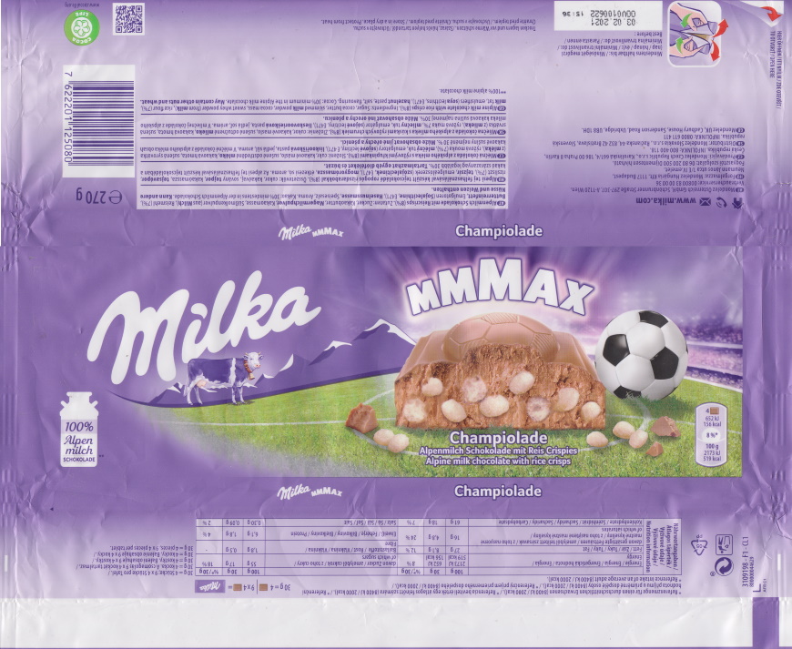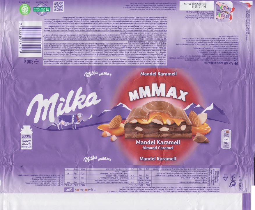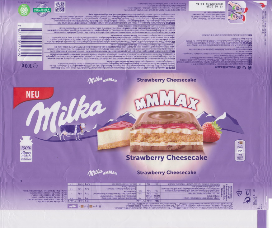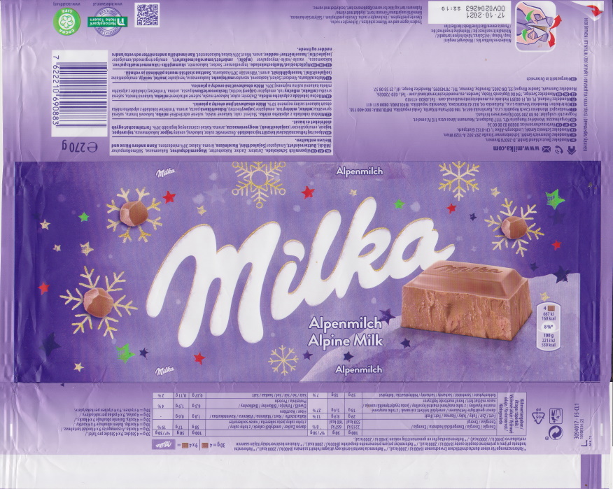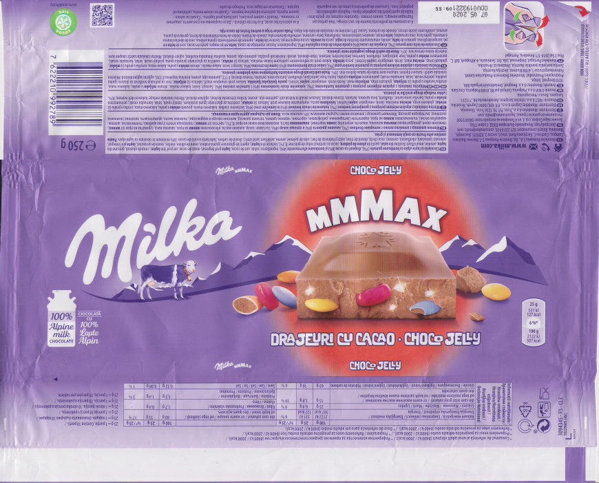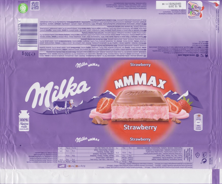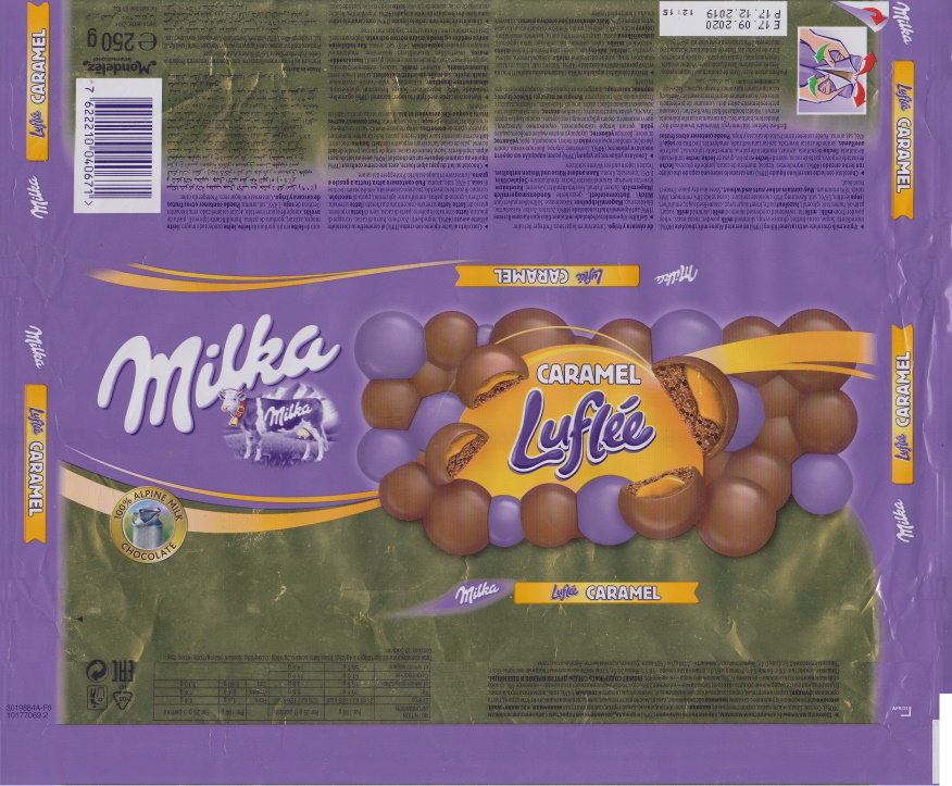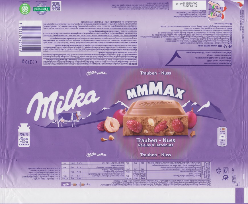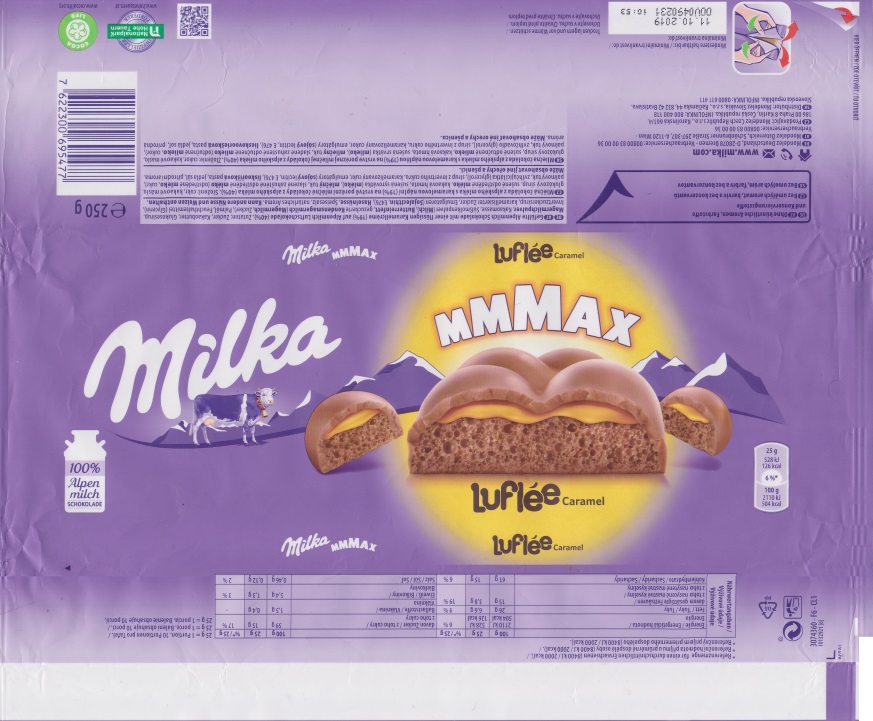 Nový vzhled čokoládových obalů velkých tabulek čokolád Milka od roku 2019.
