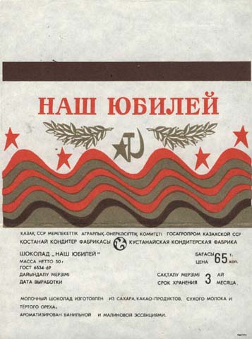 Confectionery factory was established in 1956, now KONFETY KARAGANDY. Confectionery factory in Kostanay was opened in 1974. Now BAYAN SULU. |